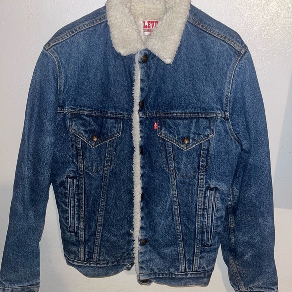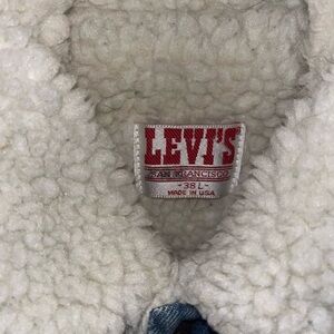 Vintage Levis Sherpa Lined Denim Jacket Size L Men Blue Trucker Jean faux fur