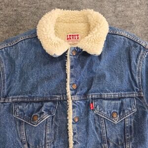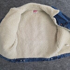 Vintage Levis Sherpa Lined Denim Trucker Jacket Mens 40R Blue Medium Wash 80s