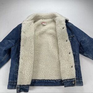 Vintage Levi’s Sherpa Lined Denim Trucker Jacket Orange Tab Size 44 USA Made
