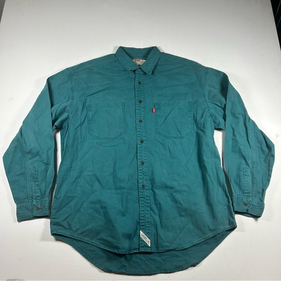 Vintage Levis Shirt Mens XL Teal Denim Jean Metal Button Up Red Tab Work 90s