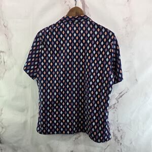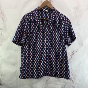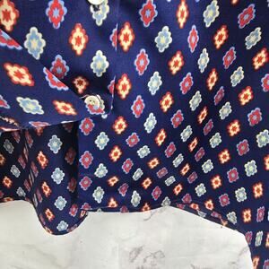 Vintage Levis Shirt Womens Large Blouse Navy Button Up 70s Retro Pattern Disco