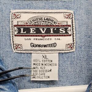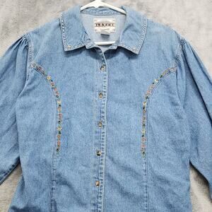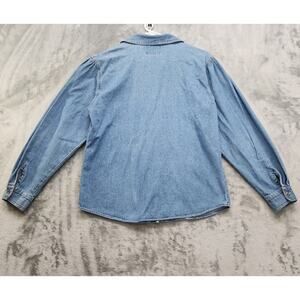 Vintage Levi's Shirt Womens Size XL Blue Embroidered Flowers Puff Long Sleeves 80s 90s Denim Chambray