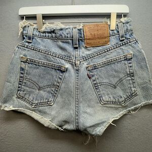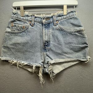 Vintage Levis Shorts Junior 7 517 Denim High Rise Waist 26 Cutoff Raw Hem 90's
