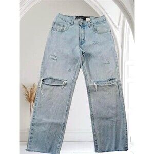Vintage Levi's Silver Tab Straight+Relaxed Distressed Jeans USA Made '98 Men's Size 31x28 1/2" Raw Hem.