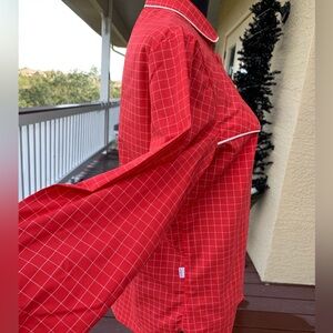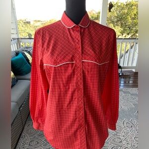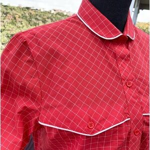 Vintage red and white button down shirt chest pockets white piping logo tag on side great condition smoke/pet free home