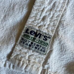 Vintage Levi's Thrashed 90s Workwear Denim Shirt XL White Cream Textured Grunge