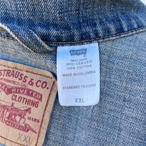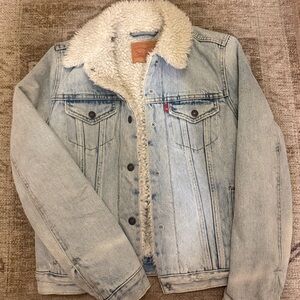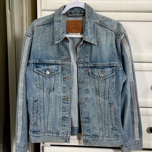 Timeless Levi's denim jacket. Ideal for layering. Casual and stylish. It’s a mens jacket, but roll up the sleeves and pair it with any dress or skirt.
