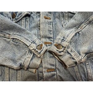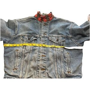 Detailed photos (inside and out) with measurements attached and are part of description. Jacket has honest wear but is in very good vintage condition and is durable denim with heavyweight flannel lining and many more years to give.