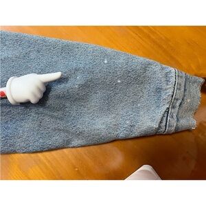 • Sleeve: Right sleeve has minor detergent/bleach spots, cosmetic only.