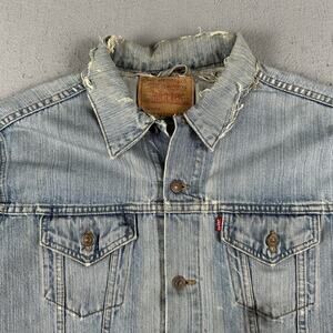 Vintage Levi’s Trucker Jacket XL Blue Denim Distressed Negative Space 70515-0518