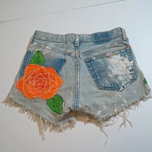 Vintage Levi’s Upcycled Floral Embroidered Distressed Retro Cut Off Shorts A21