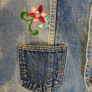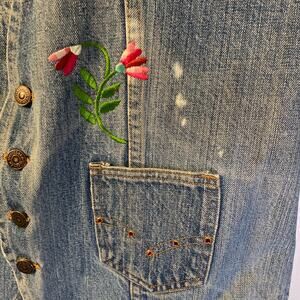 Vintage Levi's Women's Fresh Produce Denim Vest Size L Floral Embroidery Boho