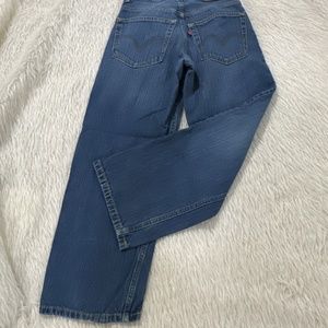 Vintage Levi’s Y2K 569 blue denim baggy loose jeans size 12, they are pre owned and in good condition. The jeans are blue denim loose jeans size 12 or 26x26 1/2”. They are used and do have some wear as you can see. They come from a smoke free home.