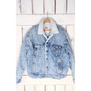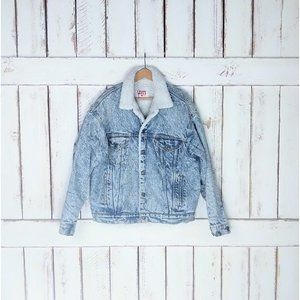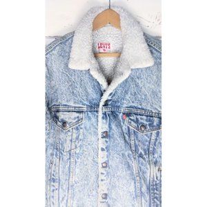Vintage Levis denim trucker red tab acid wash jean jacket/San Francisco faux sherpa snap button jacket/large
