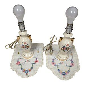 Vintage Leviton Table Lamp Set Victorian Boudoir Ceramic Floral 14.5" Tall