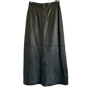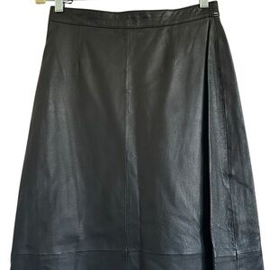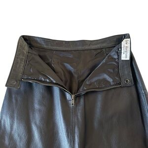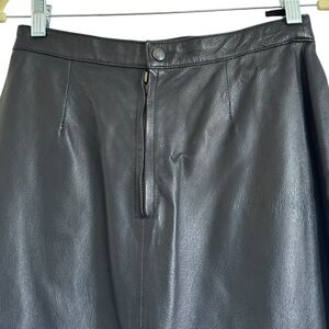 Tags; vintage leather skirt, Lew Magram skirt, black leather midi skirt, vintage a-line skirt, 90s leather skirt, classic leather skirt, minimalist leather fashion, timeless leather skirt, genuine leather skirt, vintage closet staple, black leather office skirt, elegant leather midi