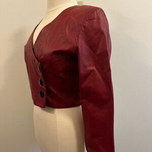 Vintage Lew Magram Red Leather Cropped Jacket Sz 14