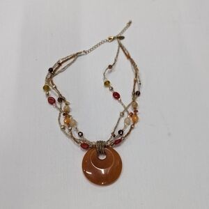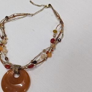 Vintage Lia Sophia Pumpkin Spice Beaded Necklace with Orange Pendant