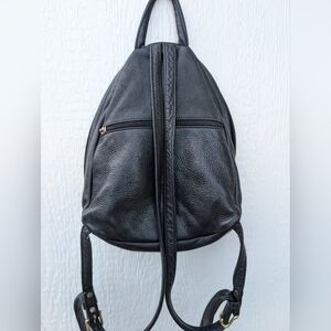 Vintage Libaire Black Pebbled Leather Backpack Bag Purse