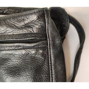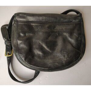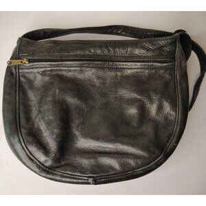 Vintage Libaire Black Stressed Leather Handbag Purse Adjustable Strap Saddle Bag