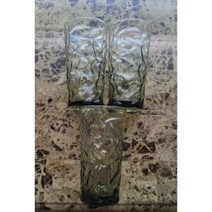 Vintage Libbey Avocado Green Crackle Pattern Juice Drinking Glasses Set of 3