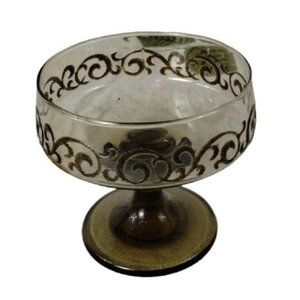 Vintage Libbey Brown Swirl 1970s Prado 2 Piece Champagne Goblets Dessert Bowls