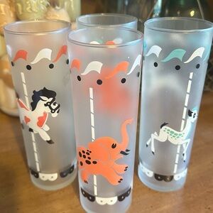 Add a whimsical touch to your home with this frosted glass set featuring charming carousel animals.