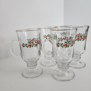 Vintage Libbey Christmas Holly Berry 6" Irish Coffee Cups Gold Rim - Set of 5
