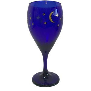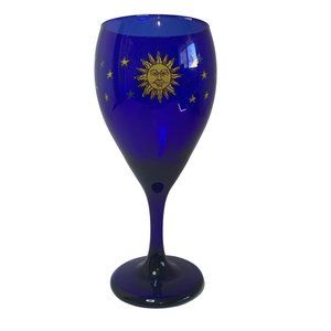 Vintage Libbey Cobalt Blue Glass Celestial Sun Moon & Stars Wine Glass 7.5 inch