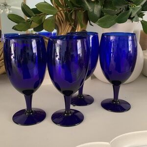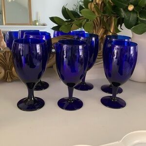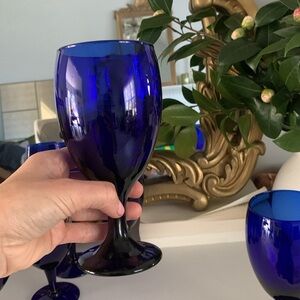 Vintage Libbey Cobalt Colored Glasses Goblets - Set of 6 Royal blue pedestal