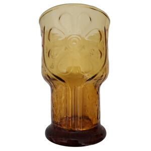 Vintage Libbey Country Garden Daisy Flower 10 oz Amber Water Glasses Set of 6