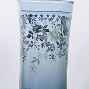 Vintage Libbey Floral Blue Tall Glass Tumblers Set of 5 Country Kitchen