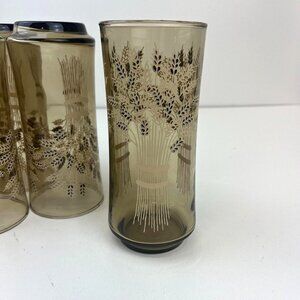 Vintage Libbey Franco Wheat 16 oz. Water Glasses Set 6qty. Smokey Amber Coloring