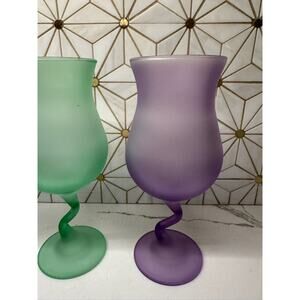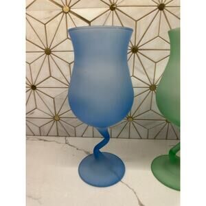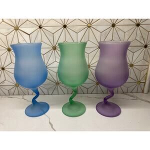 Vintage Libbey Fundamentals Z Stem Satin Cocktail Glasses | Set of 3. Blue, Green and Purple. 7.75x3.5in.