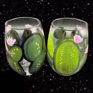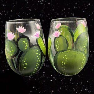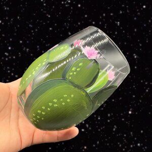 Vintage Libbey Glassware Painted Tumbler Glasses Cactus w Flowers Hand Painted 2.