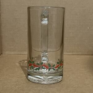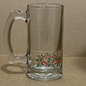 Vintage Libbey Holly Berry Glass Beer Mug Gold Trim Heavy Christmas Collectible