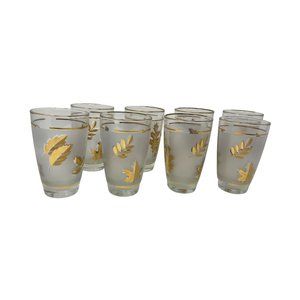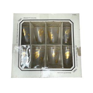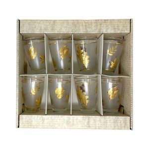 Set of eight (8) vintage Libbey Hostess Glasses in Golden Foliage patten. In their original packaging! The golden foliage design features golden leaves on a semi frosted background. This set is in amazing vintage condition - I don't think they've even been used!