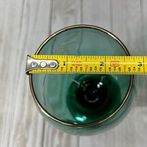 Enhance your dining experience with this set of three vintage Libbey Juniper teardrop wine and water goblets. Featuring a stunning green color and luxurious gold rims, these goblets are perfect for both casual and formal occasions.