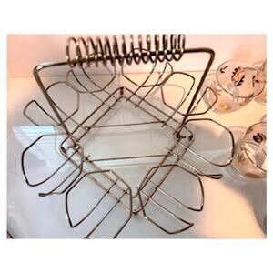 Elevate your cocktail game with this stunning 10 pc pre-owned vintage Libbey Mid-Century Modern barware set! This set includes a glass ice bucket, eight 8oz glasses, and a convenient metal caddy for easy transport and display.