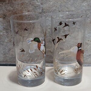 Vintage Libbey Mallards Highball Glass Game Bird Pheasant Ducks Set of 2