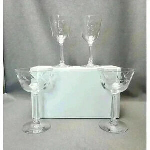 Vintage Libbey Rock Sharpe 3002-8 Laurel Wreath Champagne Saucers / Tall Sherbet Glasses (x2) & Wine Glasses (x2) Vintage Pattern # 3002-8 (Set of 4 Glasses)
