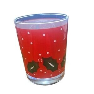Vintage Libbey Santa Claus Holly Polka Dot Drinking Glasses Set of 4 Grandma
