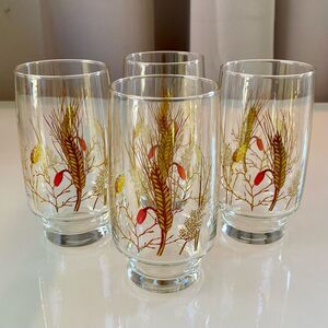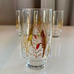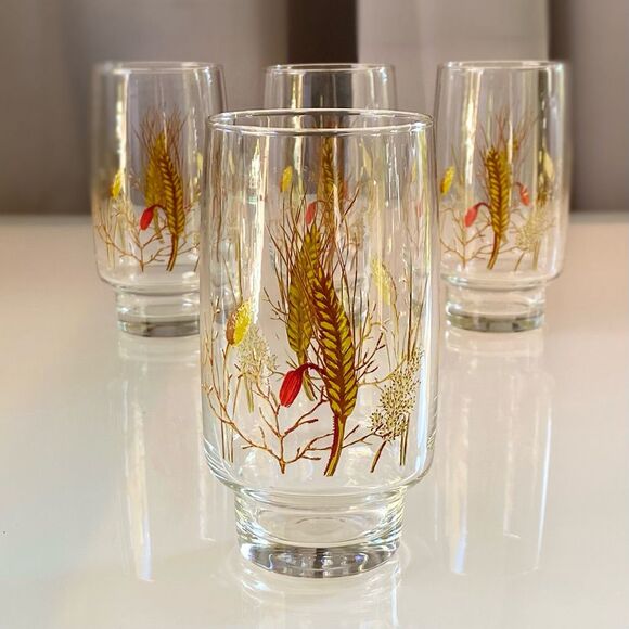 Vintage Libbey Set of 4 Footed Tall Wheat and Grass Drinking Glasses