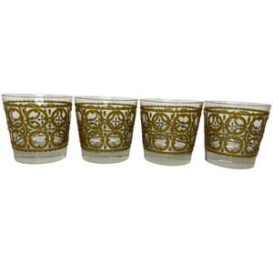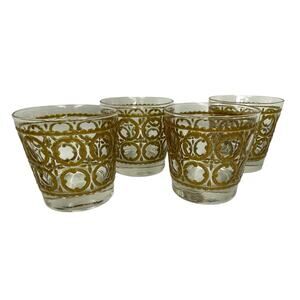 Vintage Libbey Short Glass Cups 8oz each Set of 4 Geometric Design