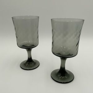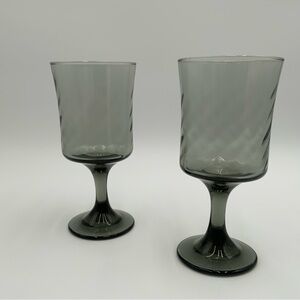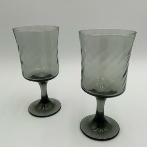 Vintage Libbey Smoke Optic Swirl Water Goblet Set Of 2 Discontinued 1985. No chips or cracks.