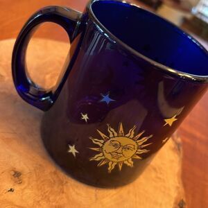 EUC (appears new). Vintage Libbey Cobalt Blue Celestial Sun Moon & Stars Mug. As seen on the set of Friends (see last photo).