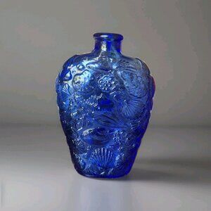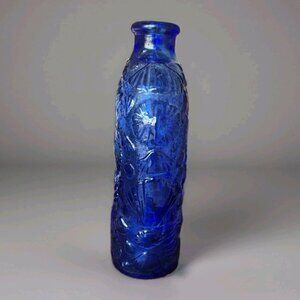 Vintage Libby Cobalt Blue Glass Seashell Design Bottle Made In Canada