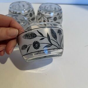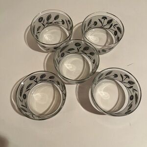 Vintage Libby Frost Dessert/ Snack Bowls Glass Wildflower/ Wheat Set of 5