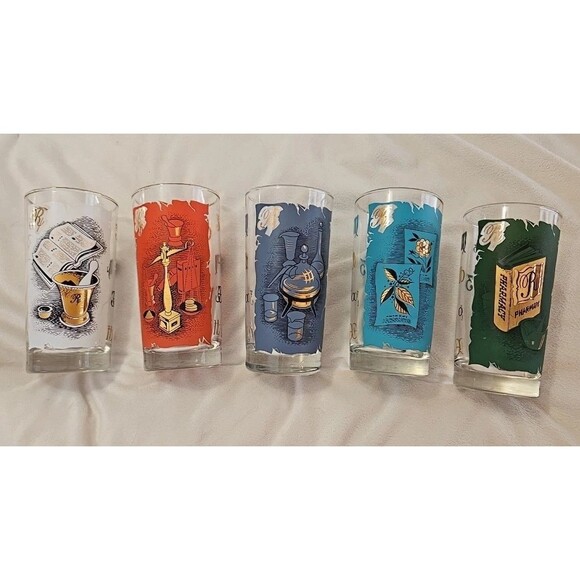 Vintage Libby Pharmacy Apothecary Highball Glasses Set 5 RX Medicine