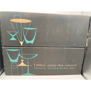 Vintage Libby Stellar 16oz Everyday Day Crystal Glassware Set (8) Original Box in very good pre-owned condition-small fading and imperfections-please see all photos